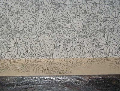 小紋の染め付けには、先ほどのように渋紙を使った手彫りの型を使う以外にも
