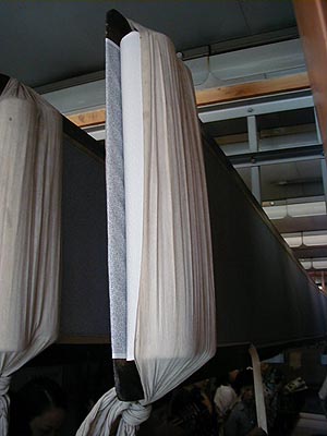 1反の生地の長さは約12メートル、生地を張る板の長さはその半分くらいですので