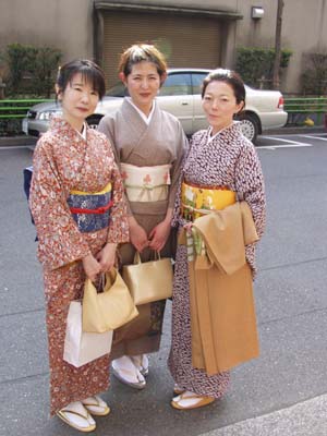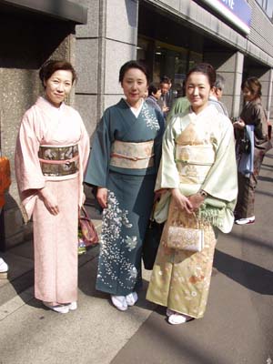 いつも三人でご参加の お友達方です。 それぞれの雰囲気の着物姿が 見ていても楽しくなります。 |