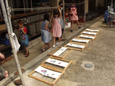 友禅が終わると、また生地を乾かします。