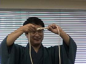 順々に次の作業に移るときに、しごいたり、穴を通したり、操行(そうこう)という機にかける時に櫛の歯のあいだを通したりいう工程がありますが